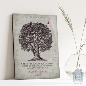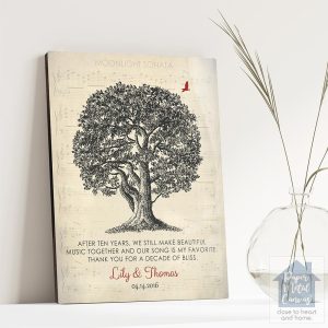 Oak Tree and Sheet Music 10th Anniversary Wall Plaque Gift for Couple LTC-1331