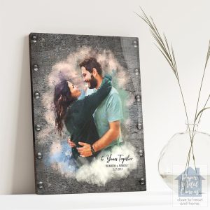 Iron Watercolor Portrait 6th Anniversary Wall Plaque Gift for Couple LTC-1841