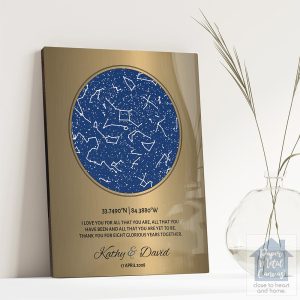 Brass Star Map 8th Anniversary Wall Plaque Gift for Couple LTC-1742