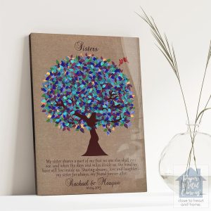Burlap Peacock Tree Wedding Wall Plaque Gift for Sister LTC-1195