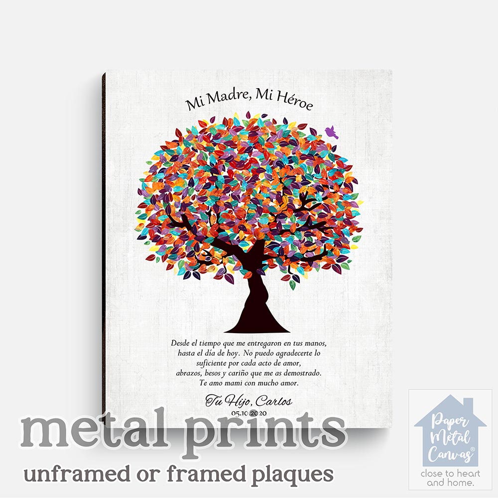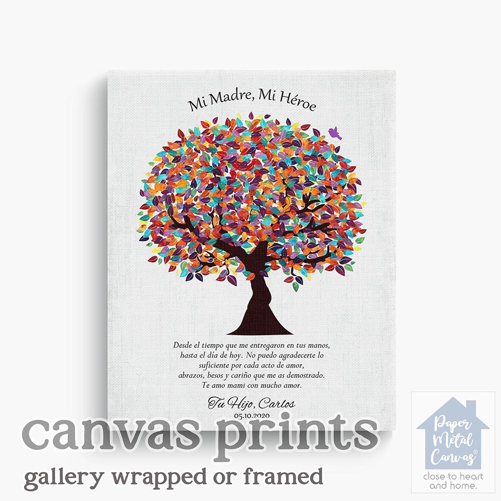Uniquely personalized colorful spanish mother’s day gift for mom, mother’s birthday and other family occasions, featuring the depicted colorful spring madre gratitude tree in spanish quote. Create a deeply personal gift for any mom or mom with your personalized names, date and text. Alternatively, this design may also be customized for an acquaintance family gift, mother’s birthday or completely custom events. Anything’s possible!